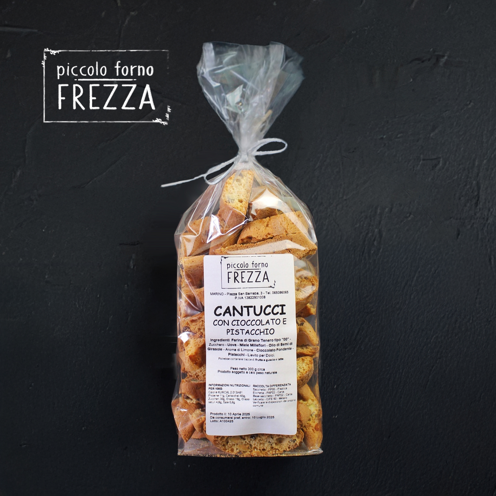 Scopri il gusto irresistibile dei nostri Cantucci al Cioccolato e Pistacchio, biscotti artigianali realizzati con passione nel cuore di Marino, ai Castelli Romani. Preparati con ingredienti freschi e locali, questi cantucci rappresentano la perfetta combinazione tra il cioccolato fondente e i croccanti pistacchi, per un’esperienza di gusto unica e indimenticabile.
