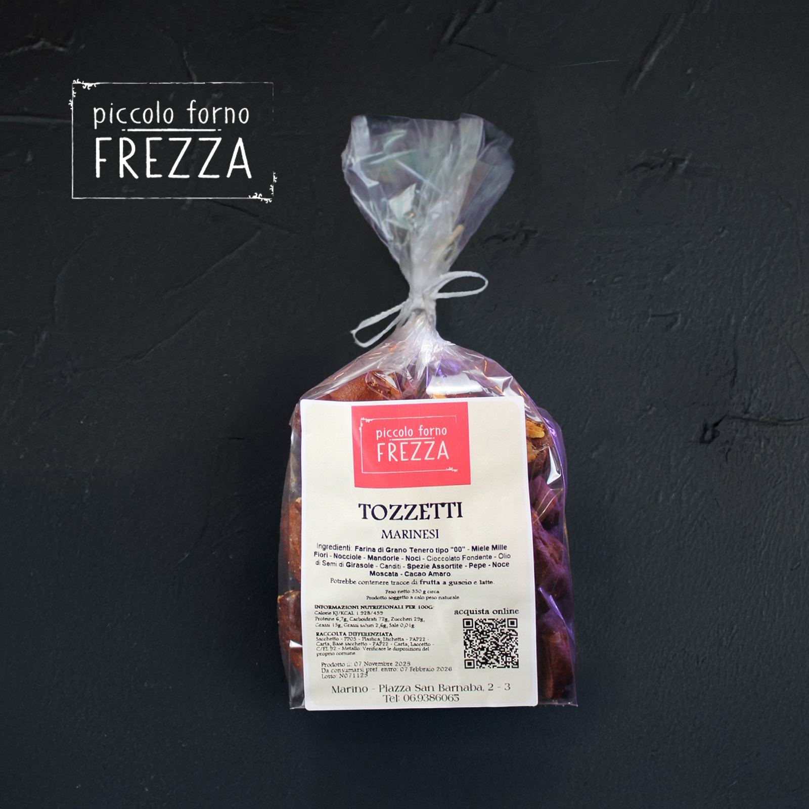 Ingredienti: Farina di Grano Tenero tipo “00”, Miele Millefiori, Zucchero, Uova fresche, Olio di Girasole, Noci, Cacao, Uvetta, Nocciole, Mandorle, Miele, Cioccolato Fondente 2% (Pasta di Cacao, Zucchero, Burro di Cacao, Emulsionante: Lecitina di Soia, Vanillina), Anice stellato, Cannella, Noce Moscata. Allergeni: Contiene Glutine (grano), Uova, Noci, Nocciole, Mandorle, Soia. Può contenere tracce di frutta a guscio e latte.